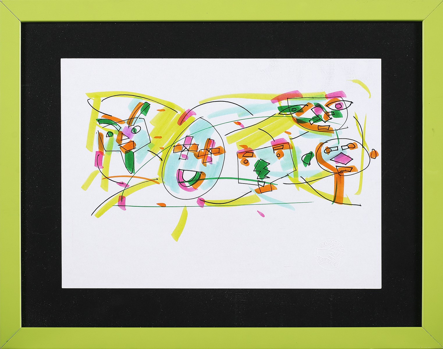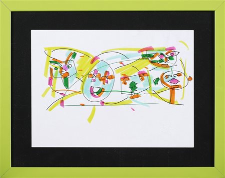 NESPOLO UGO (n. 1941) Senza titolo. Tecnica mista su carta. Cm 29,00 x 21,00. Timbro a secco Nespolo in alto a destra. Cornice presente