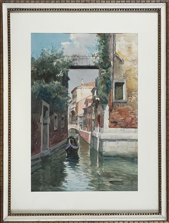 ANONIMO Senza titolo. Acquerello su carta . Cm 33,00 x 48,00. Firma illeggibile in basso a destra. Cornice presente