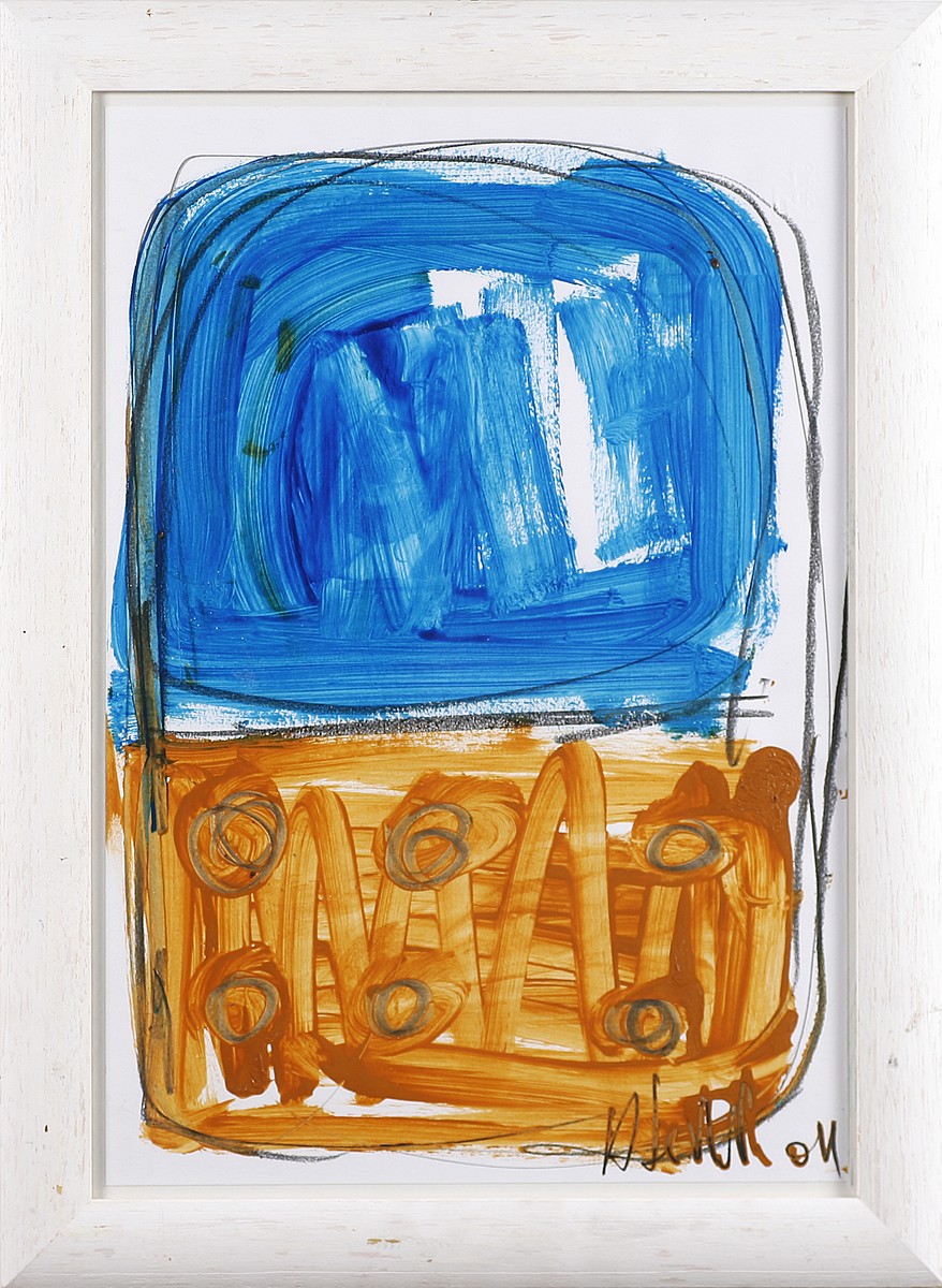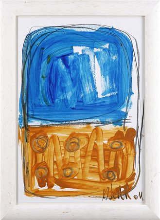IEVOLELLA ANTONIO (n. 1952) Senza titolo. Tecnica mista su carta. Cm 35,00 x 50,00. Firma in basso a destra. Autentica dell'artista su fotografia. Cornice presente