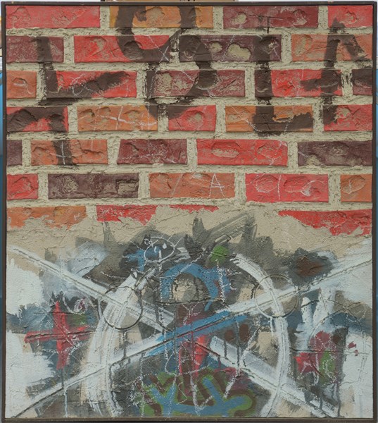Julian Pacheco "Muro de Santander" tecnica mista materica su tela cm 91x81 firm