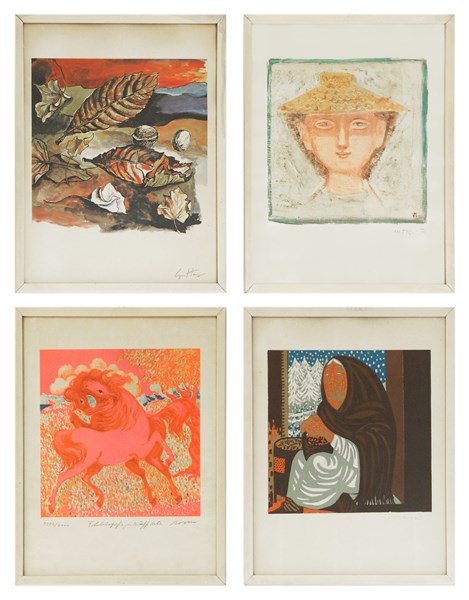 Lotto composto da quattro riproduzioni fotolitografiche (cm 30x23,5) di soggetti diversi dalle opere di Campigli, Guttuso, Migneco, Sassu