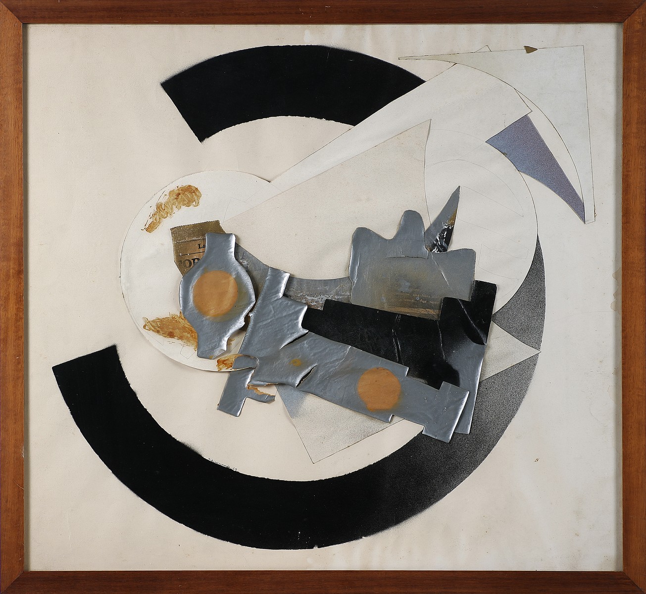 SCHIAVOCAMPO PAOLO (n. 1924) Senza titolo. 1969. Tecnica mista su carta. Cm 63,00 x 69,50. Al retro cartiglio descrittivo a cura della Galleria Arte Centro, Milano, con relativo numero d'archivio. Certificato di autenticità della Galleria Luca Sforzini Arte, Casteggio (PV). Cornice presente