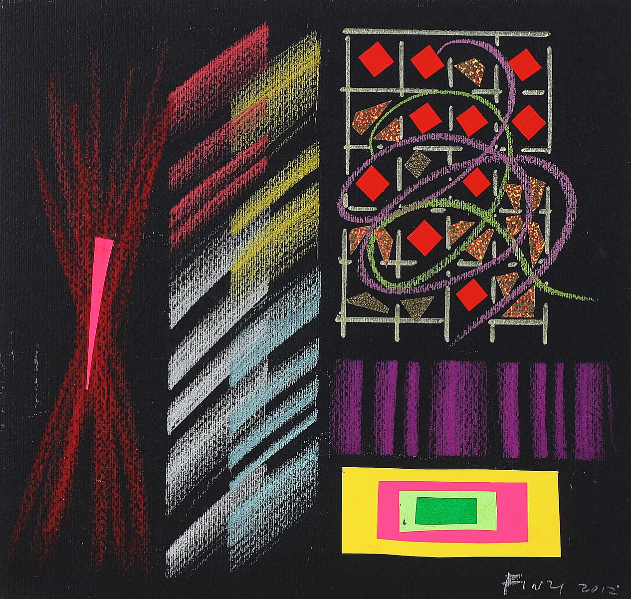 FINZI ENNIO (n. 1931) Lo sguardo indiscreto. 2012. Tecnica mista su cartoncino. Cm 35,00 x 33,00. Firma e data in basso. Autentica dell'artista su fotografia.
