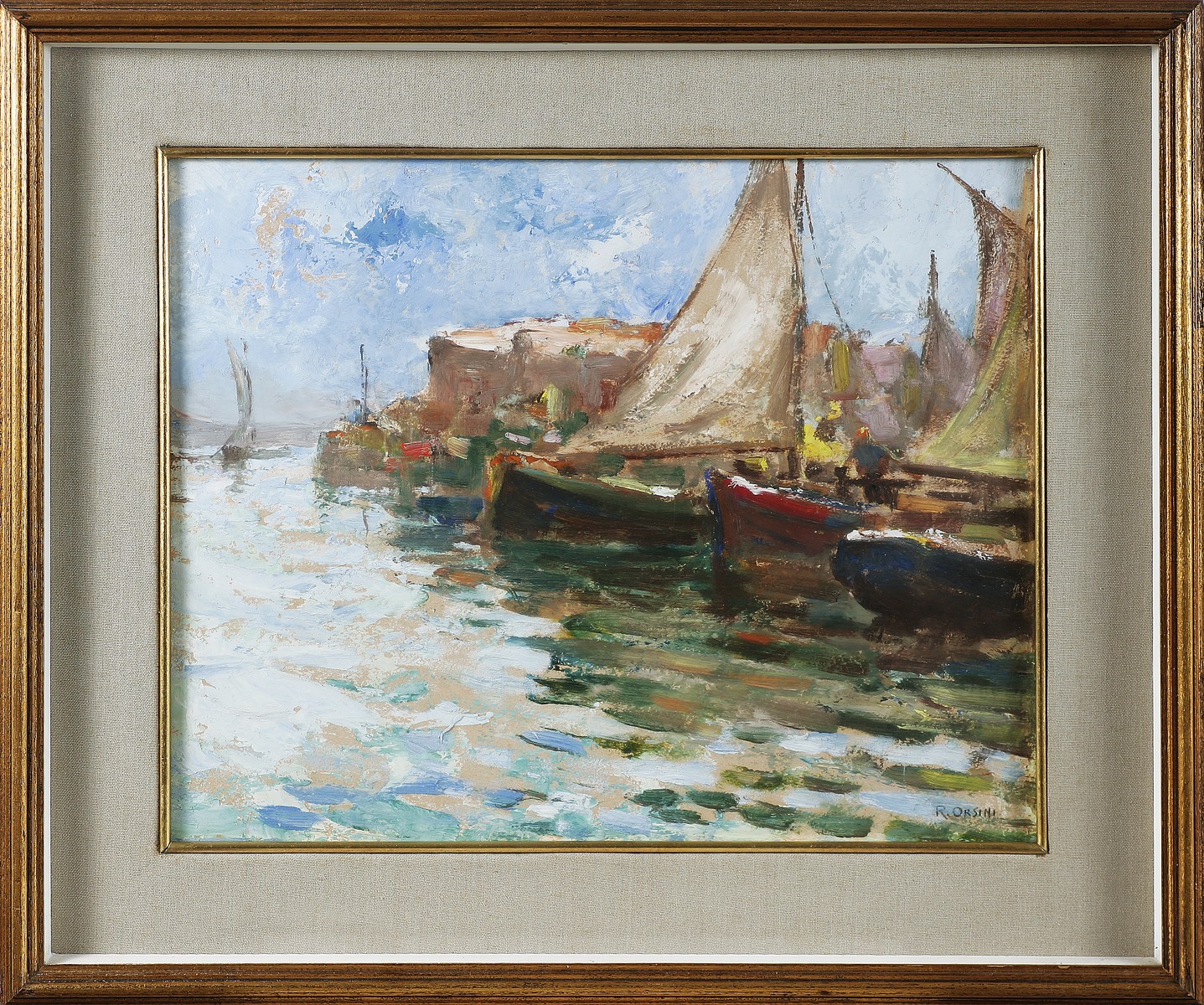 ORSINI RENATO Senza titolo. Olio su carta. Cm 38,00 x 48,00. Firma in basso a destra. Cornice presente