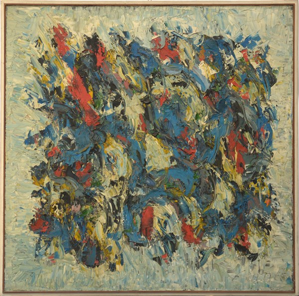 Ignoto "Senza titolo" olio su tela cm 100x100 firmato in basso a destra. In cor