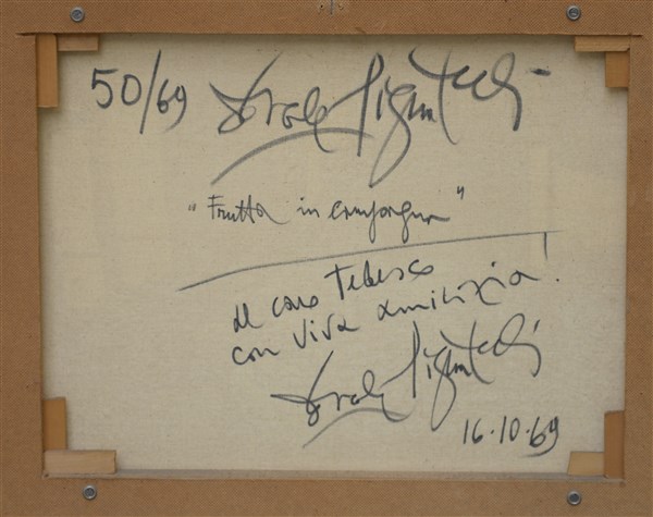Lotto 420 | Ercole Pignatelli "Frutta in campagna" 1969 olio su tela cm 40x50 firmato in alt