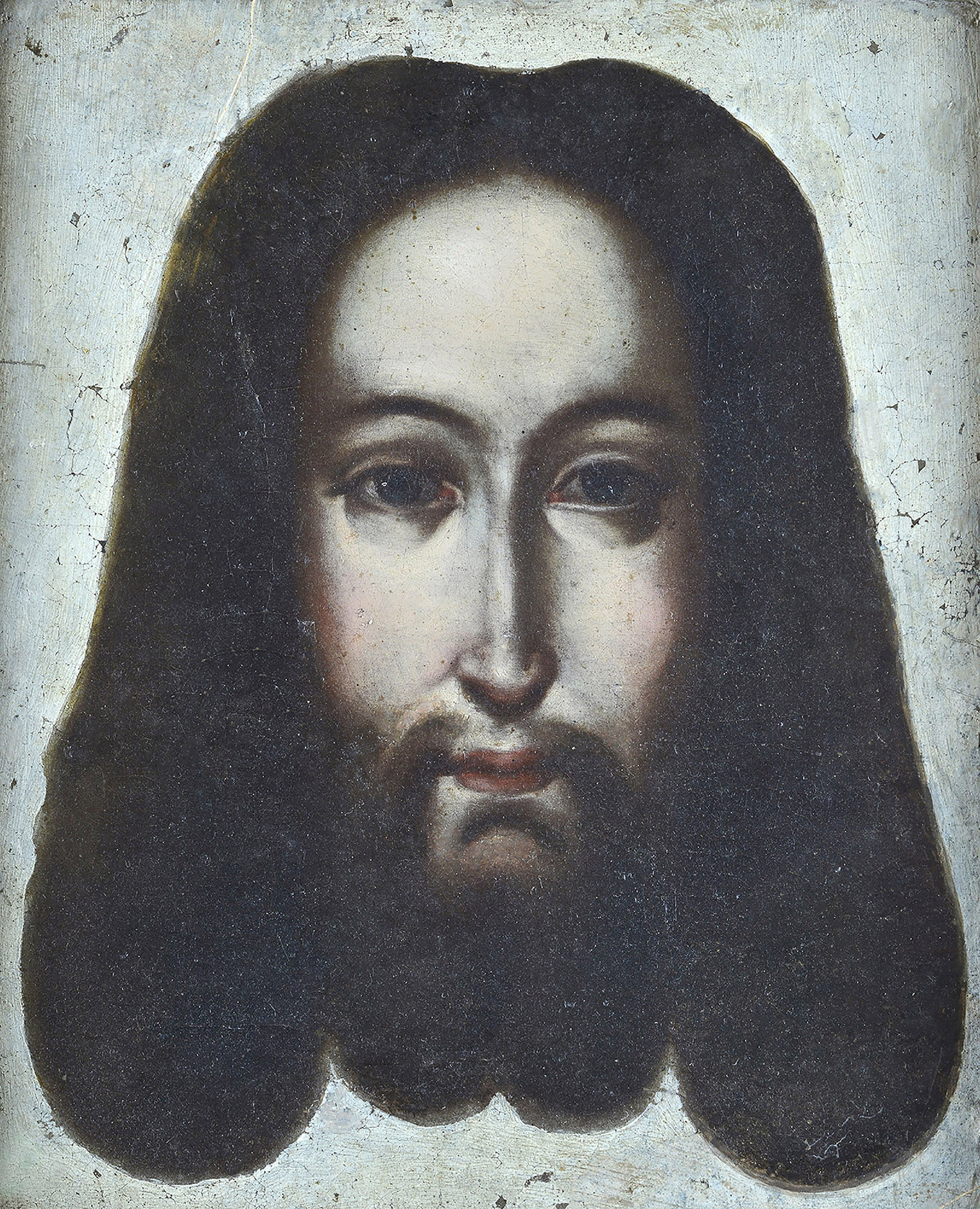 Anonimo, XVIII sec. Volto di Cristo Olio su tela, cm. 34,5x29