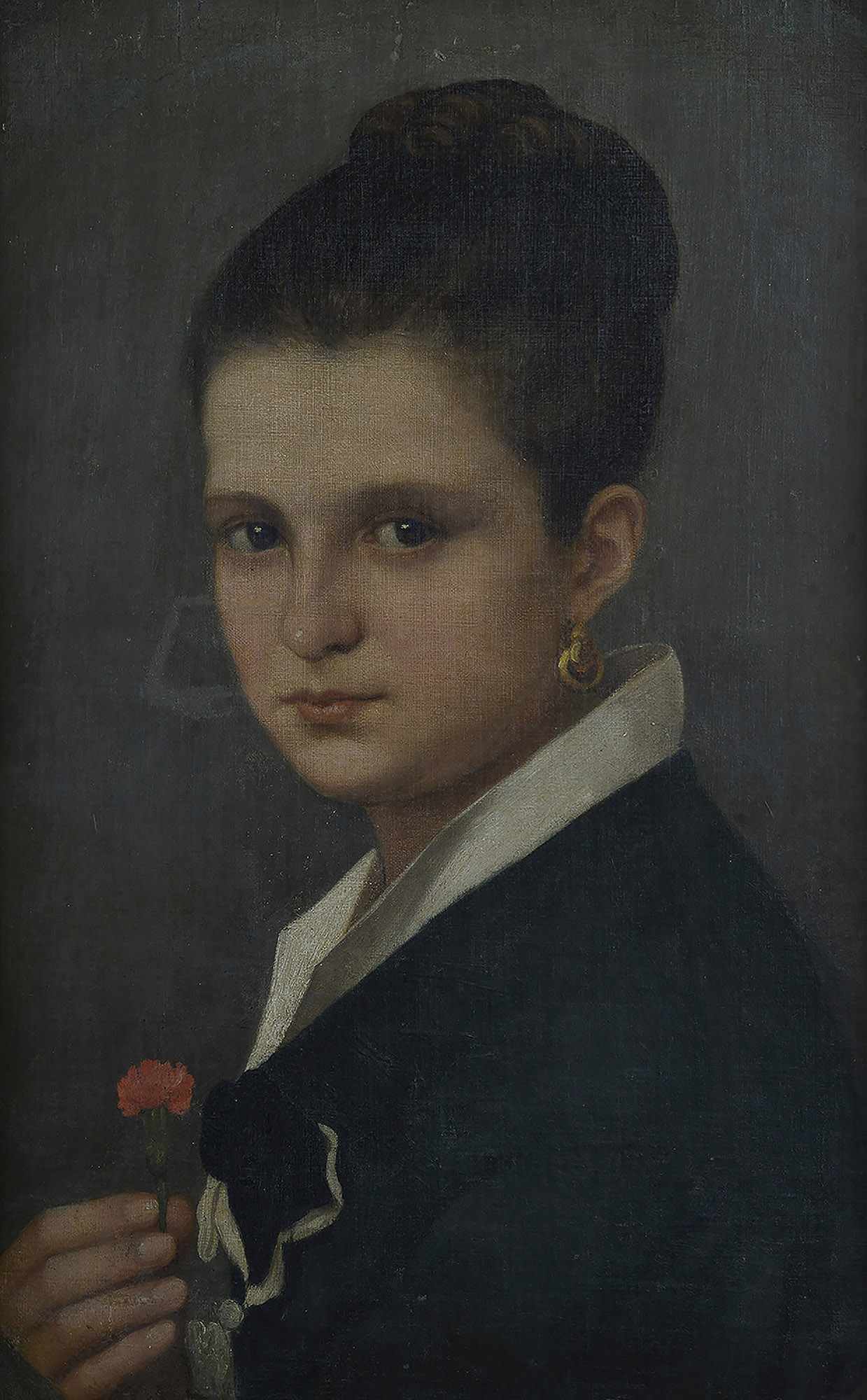 Anonimo, XIX sec. Ritratto femminile Olio su tela, cm. 52x33 Sul verso, sul telaio: "Borrani-N. 705".