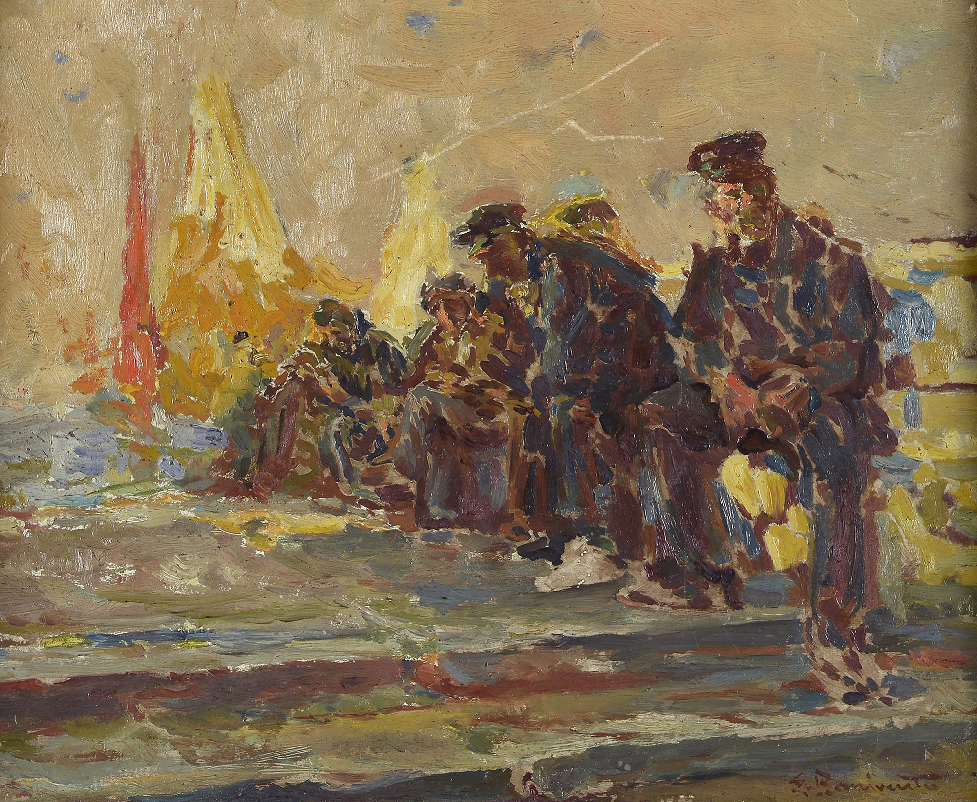 Eugenio Bonivento (1880-1956) Marinai Olio su cartone, cm. 18,5x24 Firma in basso a destra.