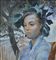 Paulo Ghiglia (1905-1979) Volto di adolescente in un paesaggio Inizi anni '30 Olio su legno, cm. 40,5x38,5 Firma in basso a sinistra. Sul verso, ad olio: albero. Autentica di Andrea Conti su fotografia.