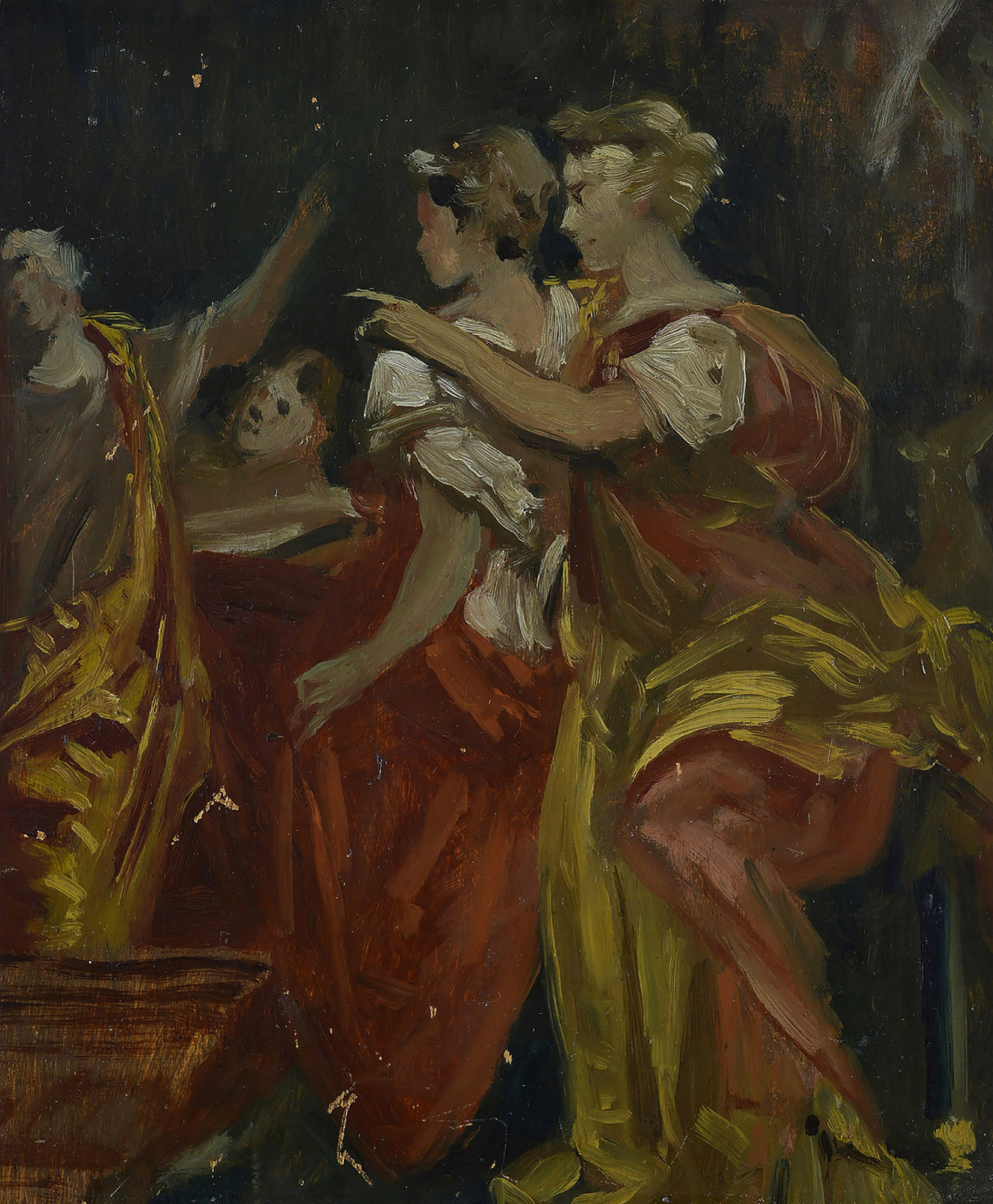 Federico Andreotti (1847-1930) Figure Olio su legno, cm. 22x19 Sul verso: firma.