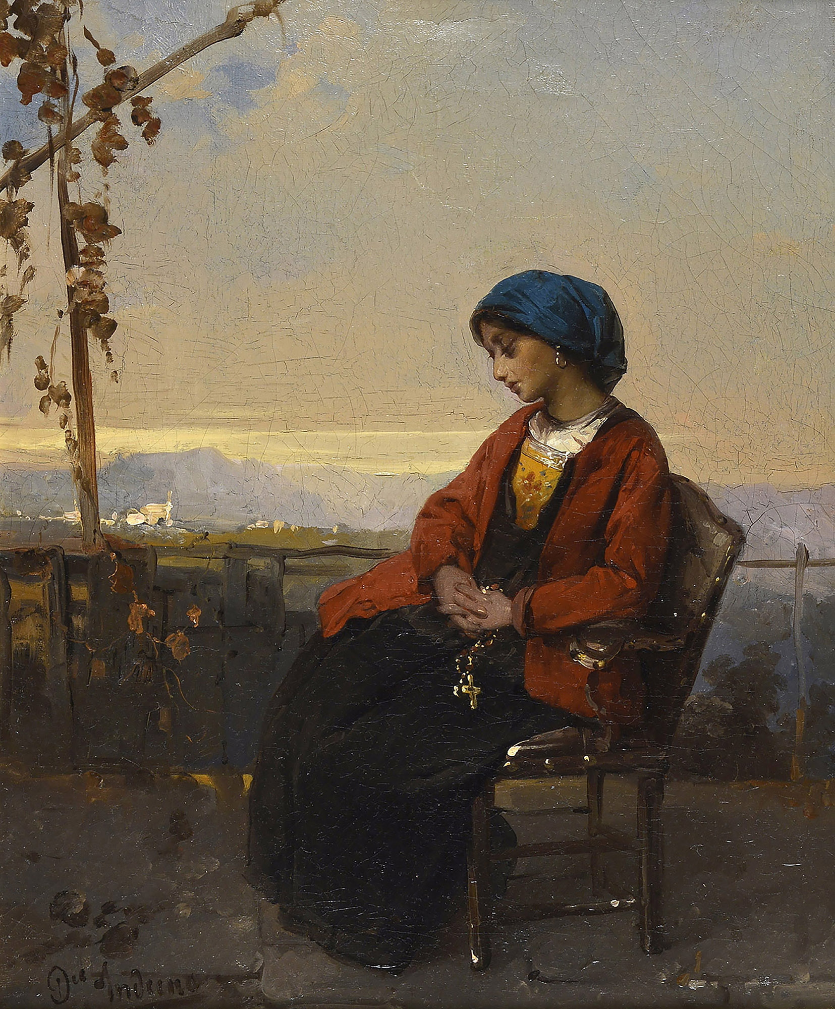 Domenico Induno (1815-1878) La preghiera Olio su tela, cm. 46x38 Firma in basso a sinistra.
