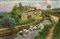 Adolfo Tommasi (1851-1933) Gorile con oche Olio su tela riportata su cartone, cm. 33x51 Firma in basso a sinistra. Sul verso: etichetta Galleria Ballerini, Prato.