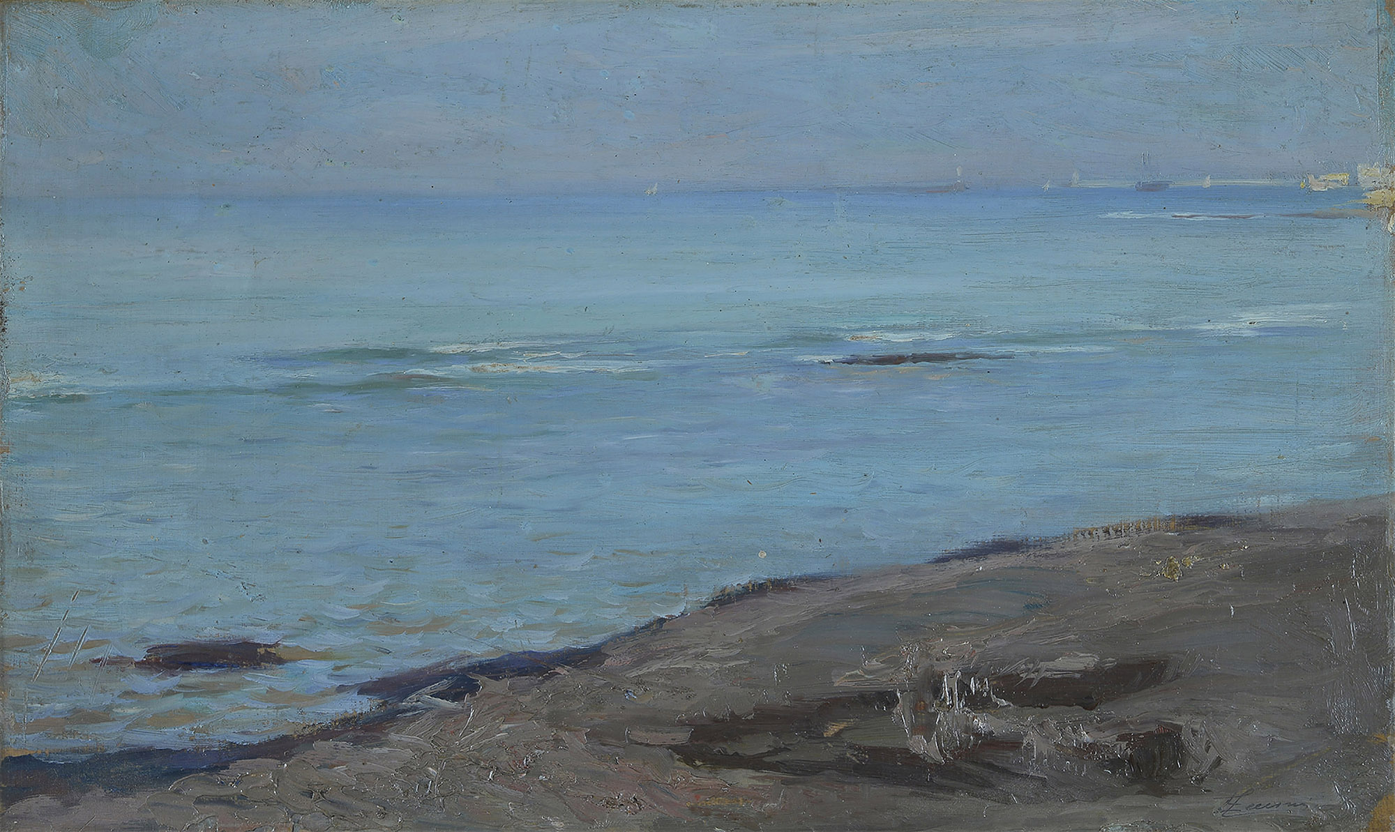 Eugenio Cecconi (1842-1903) Marina Olio su legno, cm. 20x33 Firma in basso a destra.
