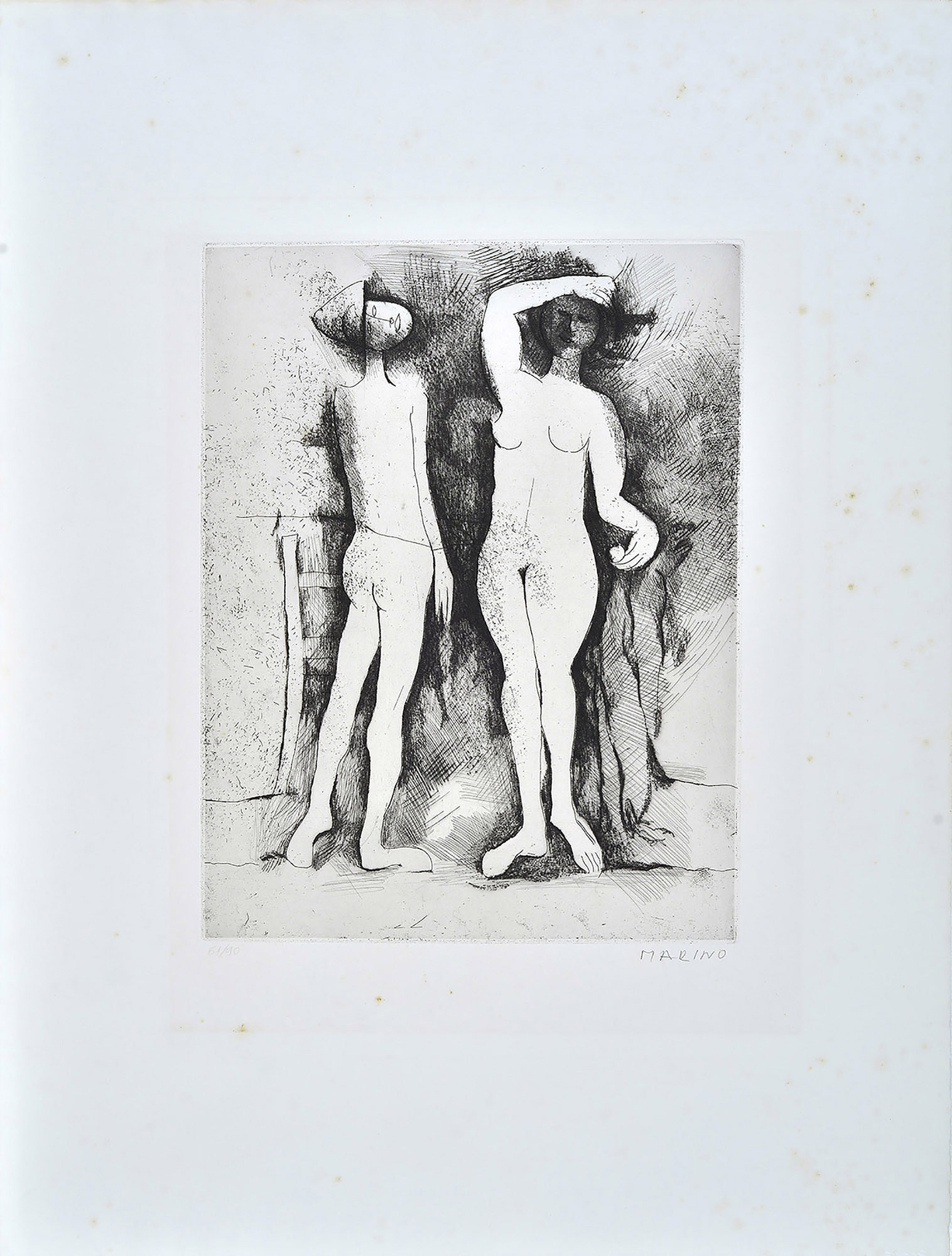 Marino Marini (1901-1980) Incontro Acquaforte, mm. 756x570 (foglio); mm. 413x320 (lastra); es. 61/90 Firma in basso a destra; tiratura in basso a sinistra. Edizione Graphis Arte, Livorno.
