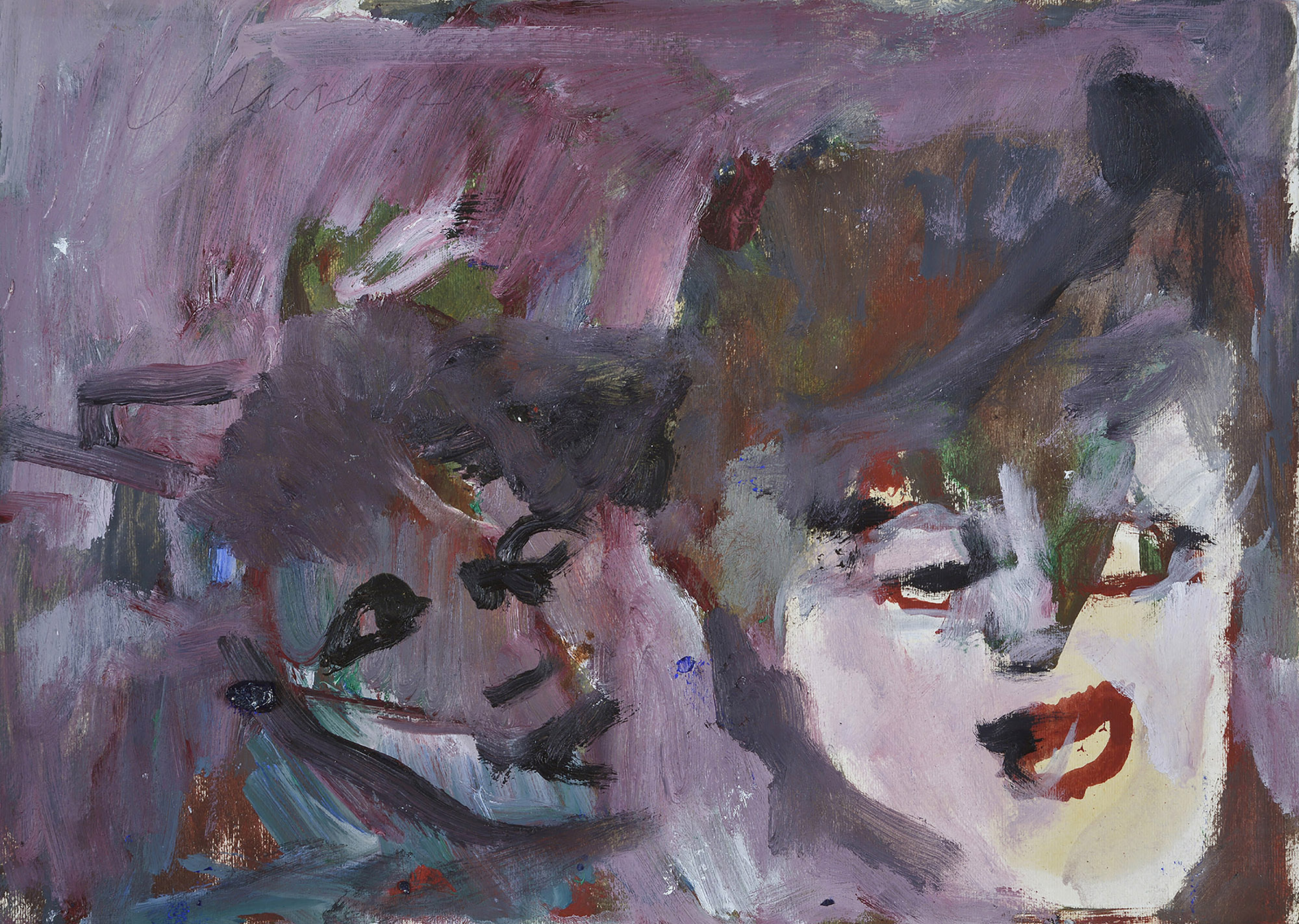 Mino Maccari (1898-1989) Due volti Olio su carta, cm. 25x35 Firma in alto a sinistra.