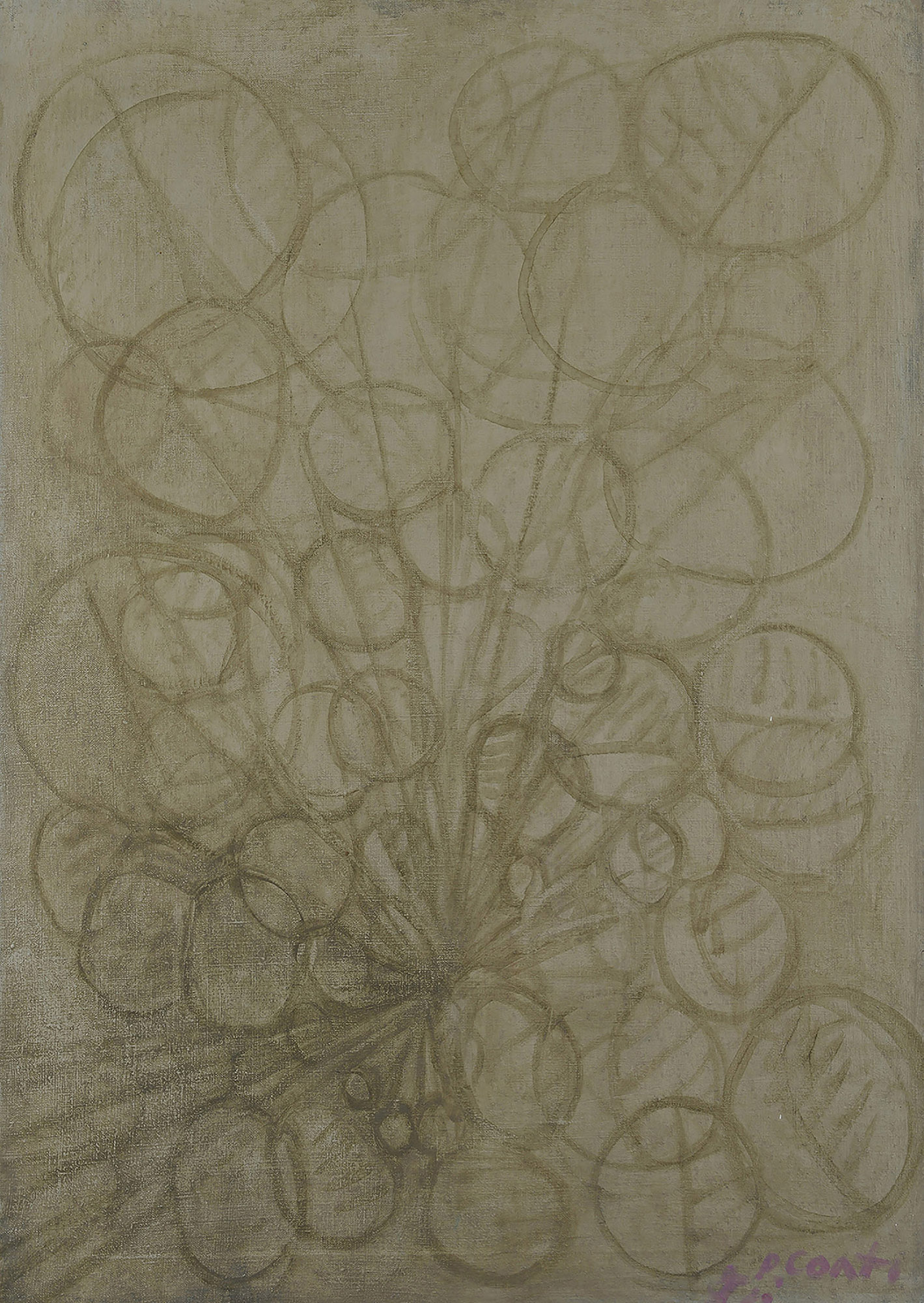 Primo Conti (1900-1988) Formazione 1970 Olio su tela, cm. 100x70 Firma e data in basso a destra. Autentica dell'autore su foto.