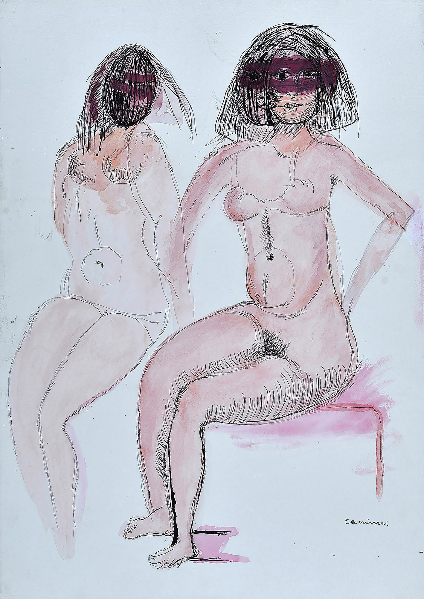Bruno Cassinari (1912-1992) Due figure Inchiostro e acquerello su carta riportata su tela, cm. 70x50 Firma in basso a destra.