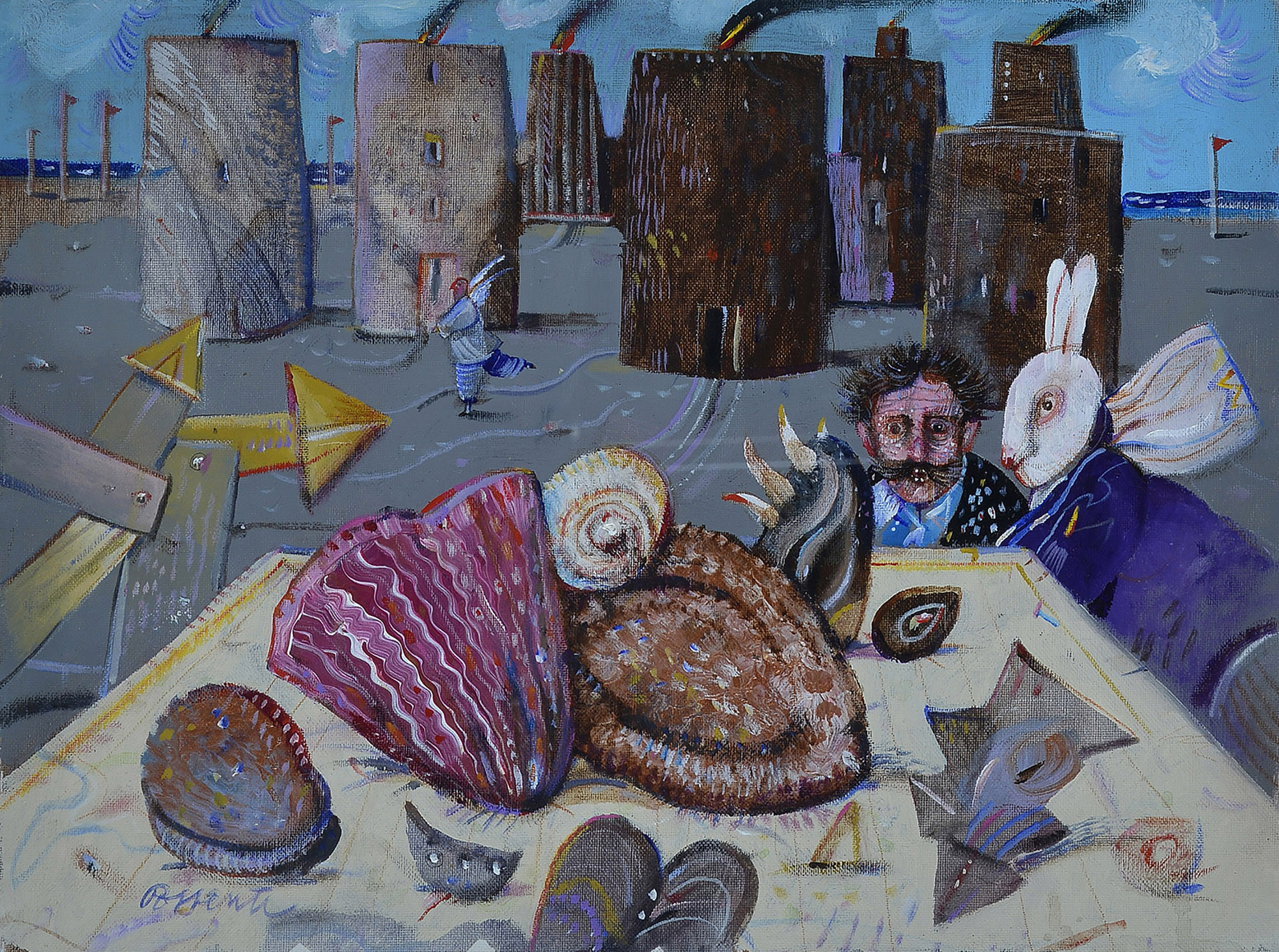 Antonio Possenti (1933-2016) Gita al mare di Dino Campana Olio su cartone telato, cm. 29x39 Firma in basso a sinistra. Sul verso: firma e titolo. Autentica dell'autore su foto con timbro Galleria d'Arte Dei Benci, Firenze.
