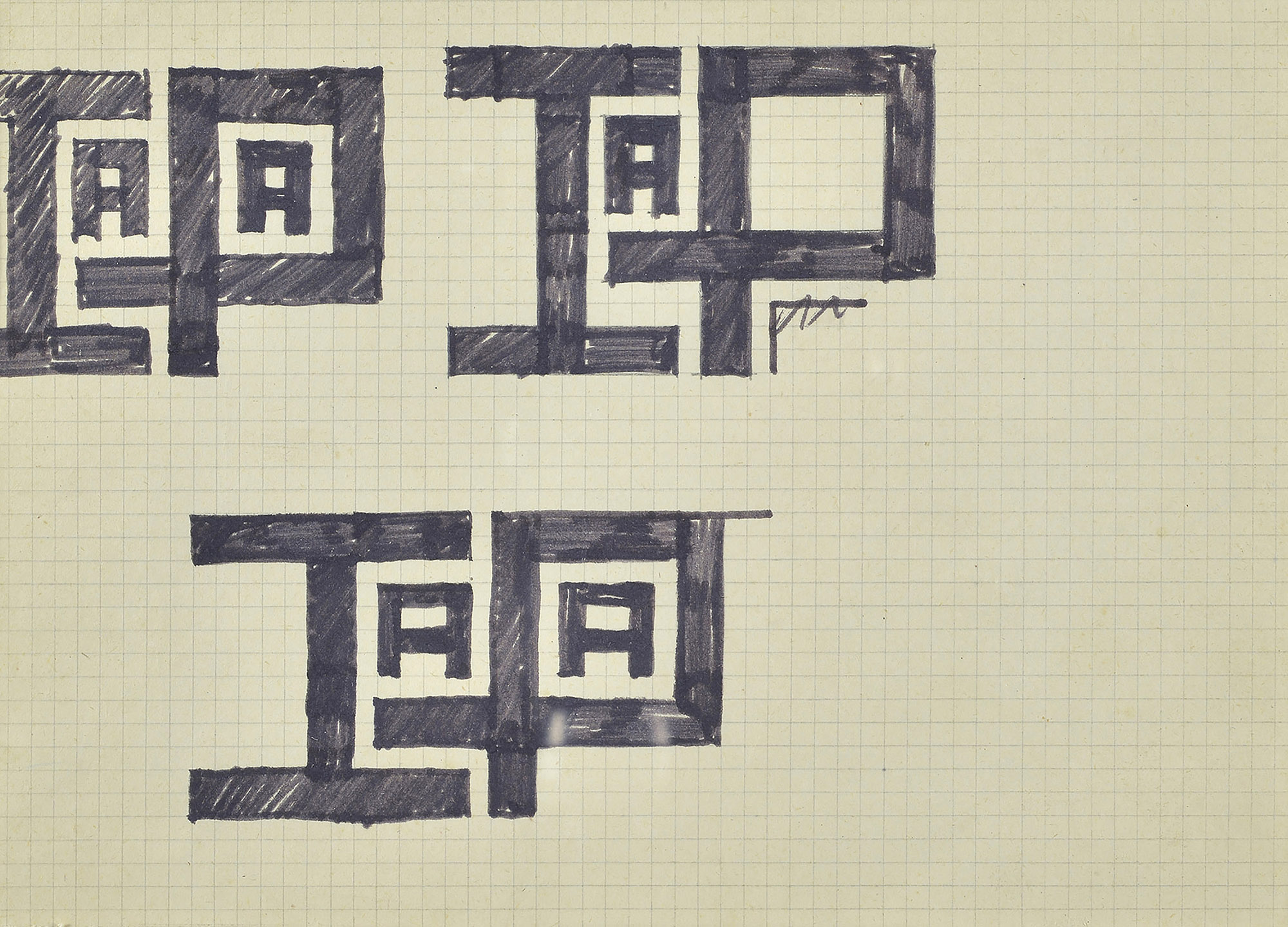 Pino Pascali (1935-1968) Prima pagina Pennarello su carta a quadretti, cm. 17x23,5 Sul verso: menabò di "Prima pagina" della Lodolo Film - Sigla Rai tv.