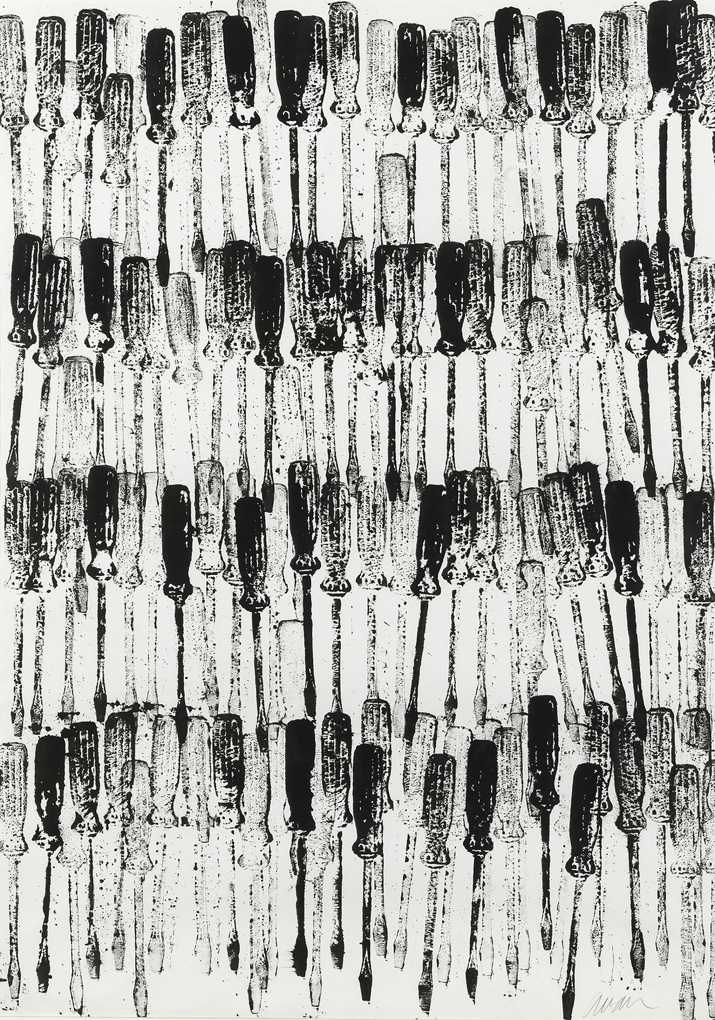 Fernandez Arman (1928-2005) Sans Titre 1977 Inchiostro su carta e impronte di pinze, cm. 105x76 Firma in basso al centro. Bibliografia: 2006, 5 Nouveau Réalisme, Arman César Cristo Hains Spoerri, catalogo della mostra con testi critici di Alberto Fiz, Galleria d'Arte Vecchiato, Padova, p. 139. Esposizioni: 2019, Arman, Tornabuoni Arte, Milano, ottobre-dicembre (pubblicato sul catalogo della mostra a cura di Rachele Ferrario, Tornabuoni Arte, Firenze, pp.66-68, p. 84).