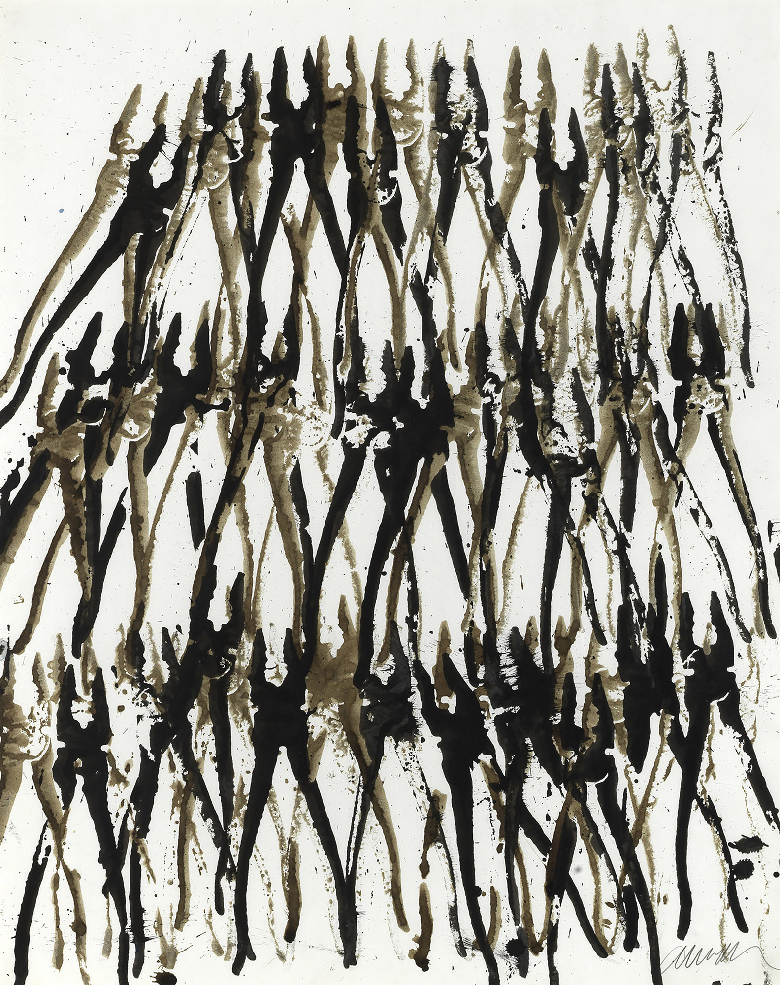 Fernandez Arman (1928-2005) Sans Titre 1977 Inchiostro su carta, impronte di cacciaviti, cm. 105x76 Firma in basso a destra. Bibliografia: 2006, 5 Nouveau Réalisme, Arman César Cristo Hains Spoerri, catalogo della mostra con testi critici di Alberto Fiz, Galleria d'Arte Vecchiato, Padova, p.139. Esposizioni: 2019, Arman, Tornabuoni Arte, Milano, ottobre-dicembre (pubblicato sul catalogo della mostra a cura di Rachele Ferrario, Tornabuoni Arte, Firenze, pp.68-69, p. 84).