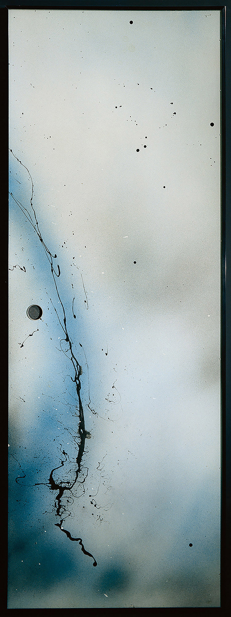 Lucio Fontana (1899-1968) Anta di armadio 1952-1953 Tecnica mista su vetro, cm. 163x60 Bibliografia: 1996, Lucio Fontana, catalogo della mostra a cura di Tornabuoni Arte, Milano; 2006, Lucio Fontana, catalogo ragionato di sculture, dipinti, ambientazioni, a cura di Enrico Crispolti, Skira, Milano, tomo II, p. 918, n. 52-53 V 37 b; Esposizioni: 1993, Lucio Fontana, Galleria Il Chiostro, Milano, aprile-maggio (ripr. sul catalogo della mostra a cura di Luigi Cavadini, Galleria il Chiostro, Milano); 2015, Departure from the surface.The invention of Italian Modernism, Setareh Gallery, Dusseldorf, ottobre-novembre; 2018, Boom: Art and Industry in 1960s Italy, Tornabuoni Art, Gallery, Londra, aprile - giugno.
