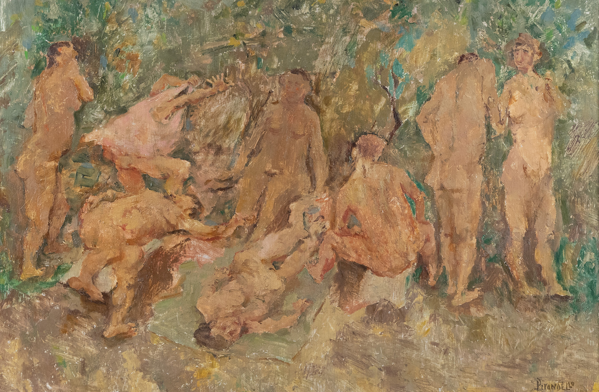 Fausto Pirandello (Roma 1899-Roma 1975), Nudi nel bosco, 1940 - 1945 ca.