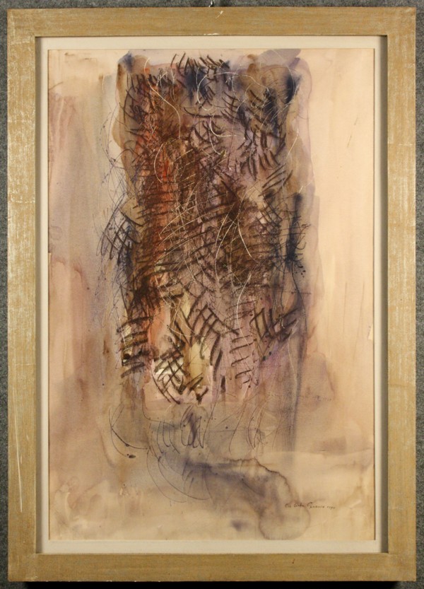 Firmato, datato. GUENZI COSTANTINO - Milano, 1926-1989. Acquarello su cartoncino telato raff. ''ASTRATTO''. Firmato e datato 1970 in basso a destra. Mis. Lung. cm. 66 Alt. cm. 99 ca.