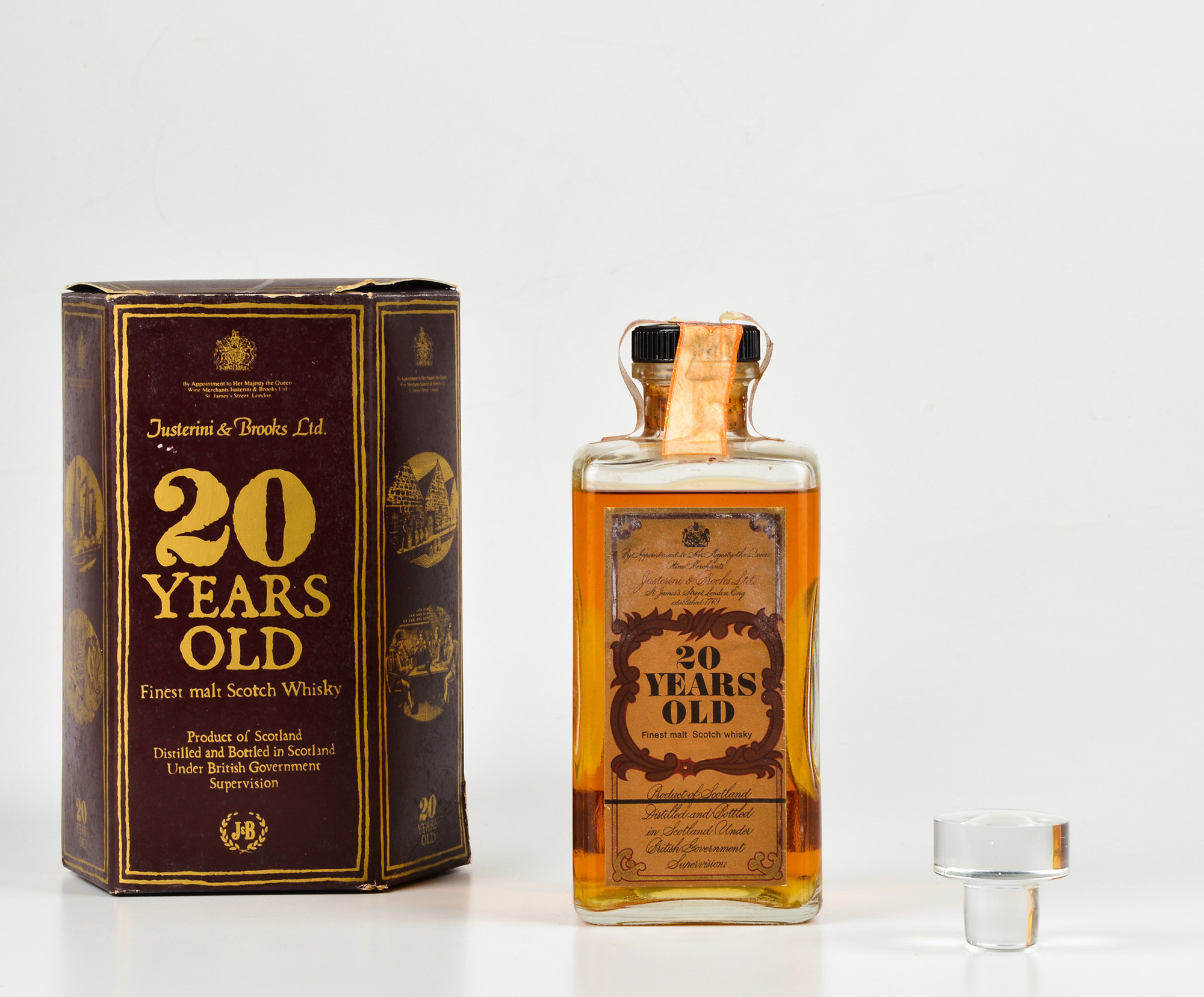 Justerini & Brooks, Finest Malt Scotch Whisky 20 years old Decanter,