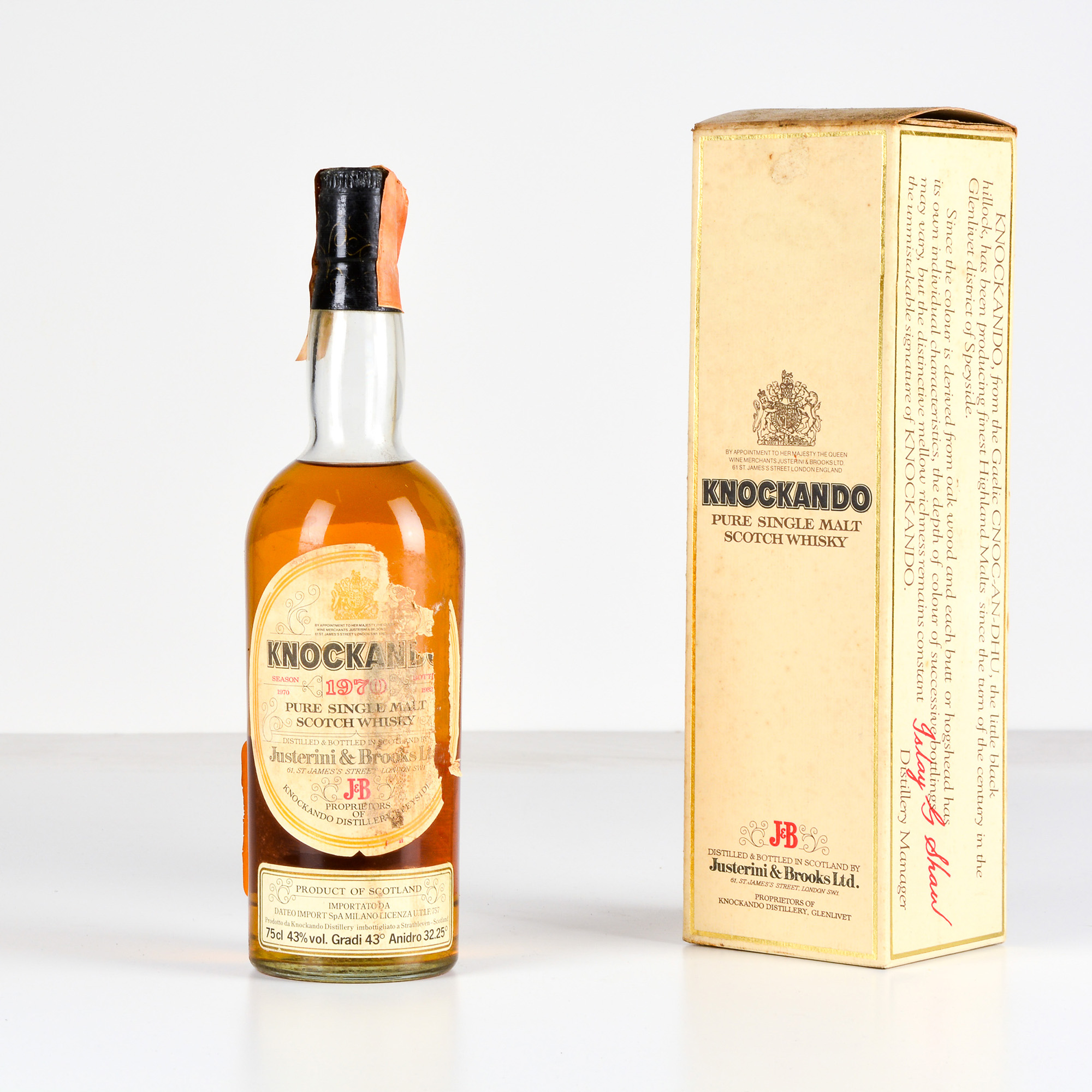 Knockando, Justerini & Brooks, Pure Single Malt Scotch Whisky, (1 Bt) 1970 43% 1 Bt TS OC