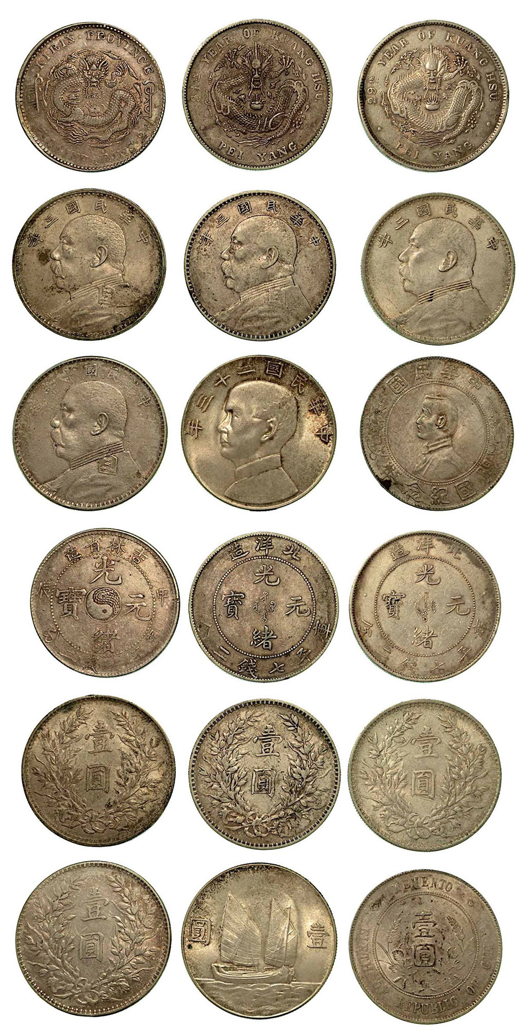 CINA. Lotto di nove monete., Cina Province, Dollar (x 3 esemplari). Cina Repubblica, Dollar (x 6 esemplari). Conservazioni da MB/BB a q.SPL.