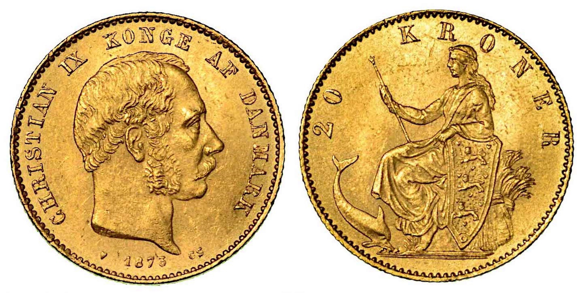 DANIMARCA. Christian IX, 1863-1906., 20 Kroner 1873.