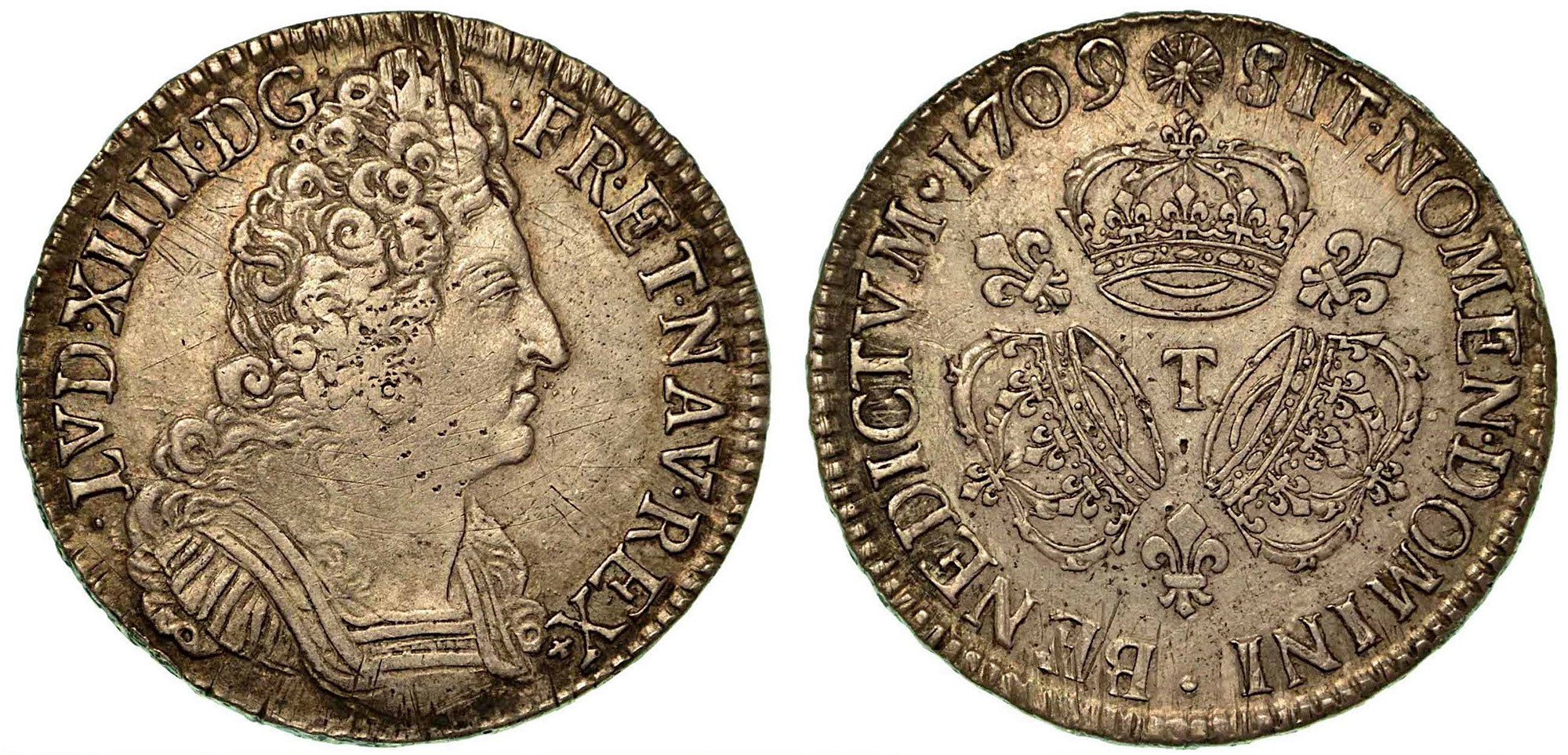 FRANCIA. Louis XIV, 1643-1715., Ecu 1709 T.
