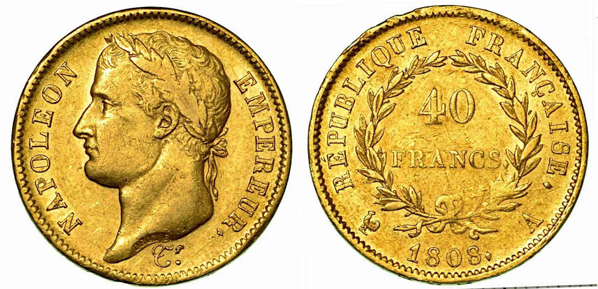 FRANCIA. Napoleon I, 1801-1815., 40 Francs 1808, zecca di Parigi.