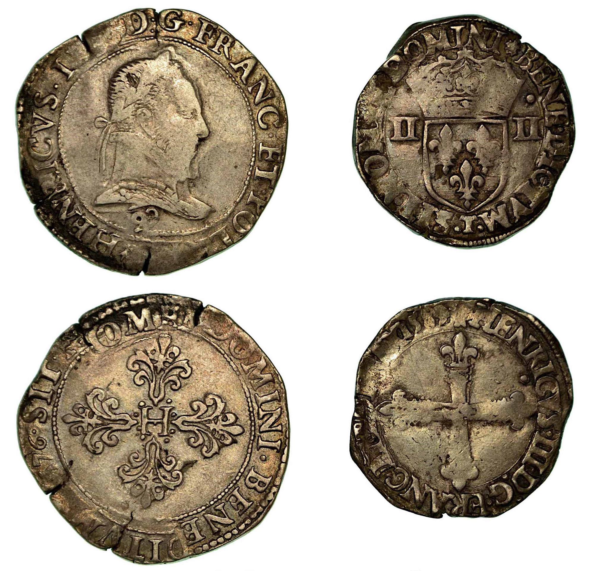 FRANCIA. Lotto di due monete., Henri III, 1574-1589. Franc 1576 (g. 14,12. MB/BB) - Quart d'ecu 1589 (g. 9,67. MB).
