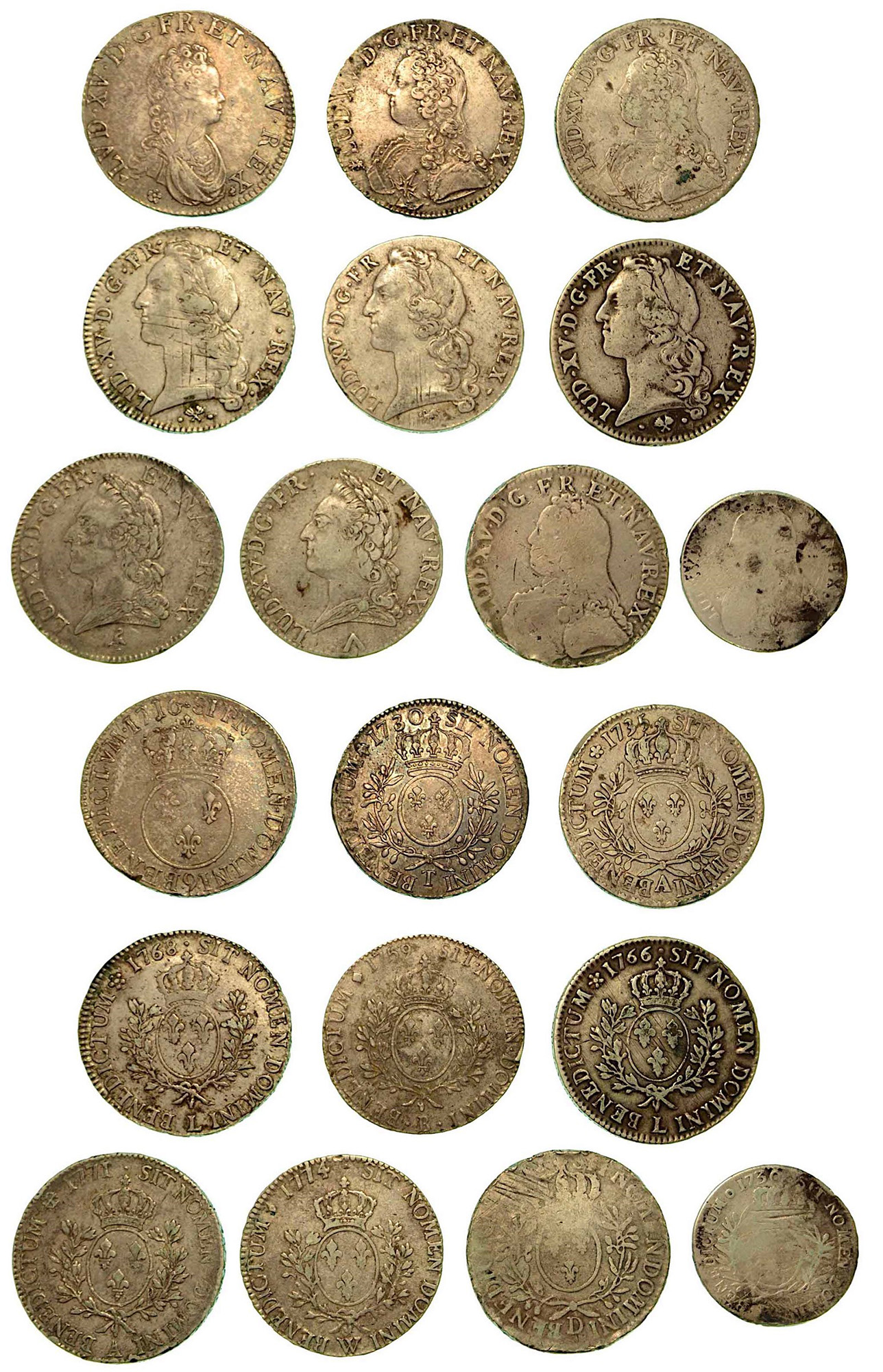 FRANCIA. Lotto di dieci monete., Louis XV, 1715-1774. Ecu (x 9 esemplari) - 1/2 Ecu. Conservazioni da B/MB a BB.
