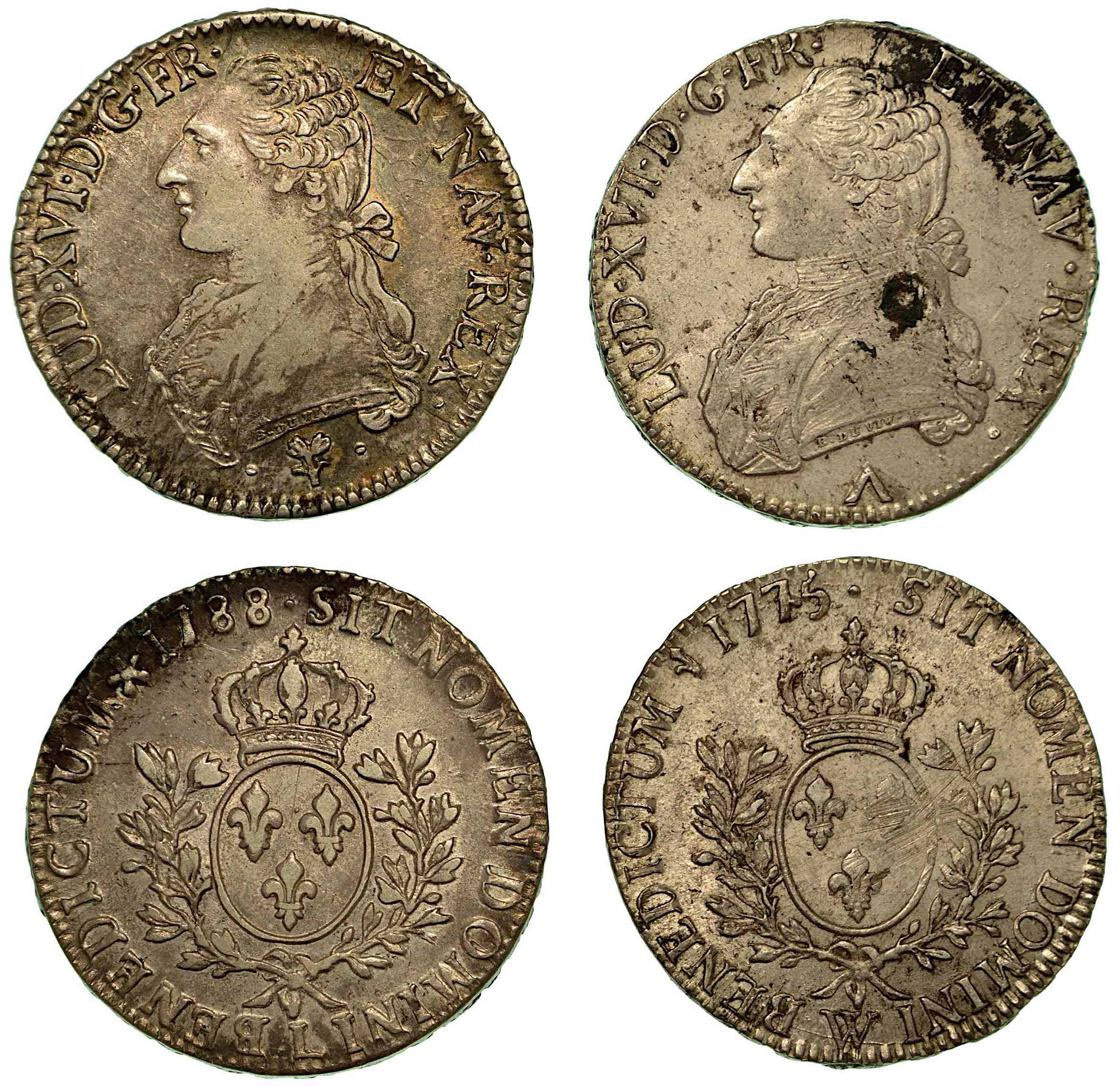 FRANCIA. Lotto di due monete., Louis XVI, 1774-1793. Ecu 1775W (BB) - 1778L (BB/q.SPL-patina iridescente). KM# 564.16 - 564.9.