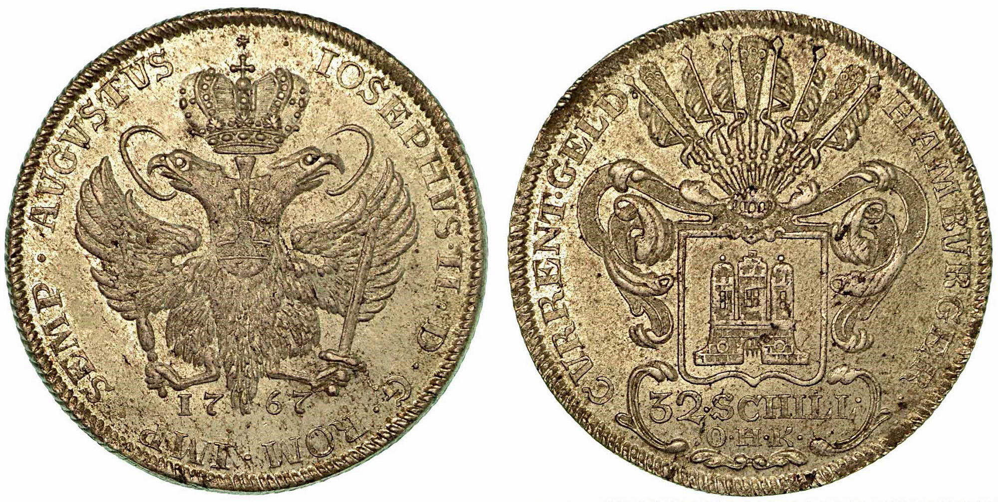 GERMANIA - AMBURGO., Thaler a nome di Joseph II, 1767. Aquila bicipite coronata R/ Stemma. KM# 440. Arg. g. 18,16. q.SPL