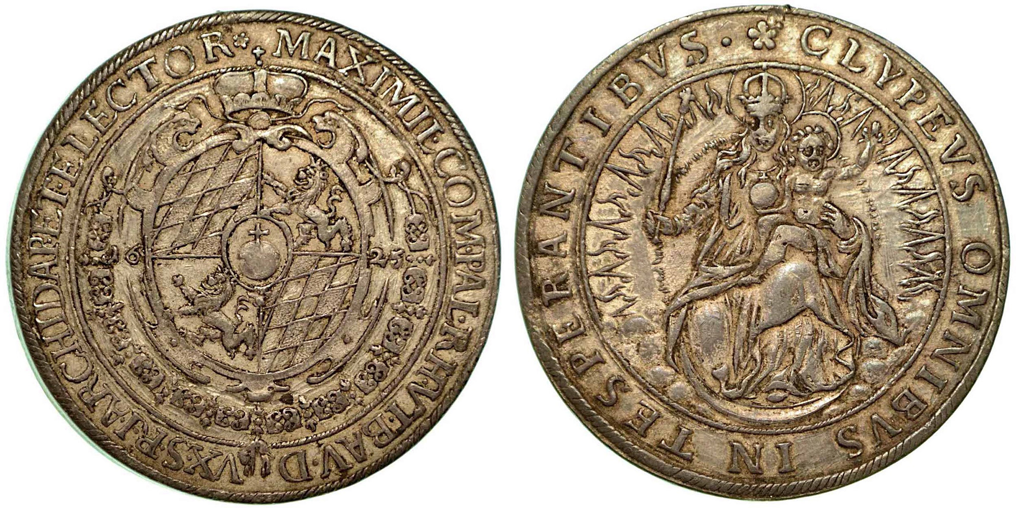 GERMANIA - BAVIERA. Maximilian I, 1598-1651., Thaler 1625. Stemma coronato. R/ Madonna con Bambino. KM# 197. Arg. g. 29,42. BB