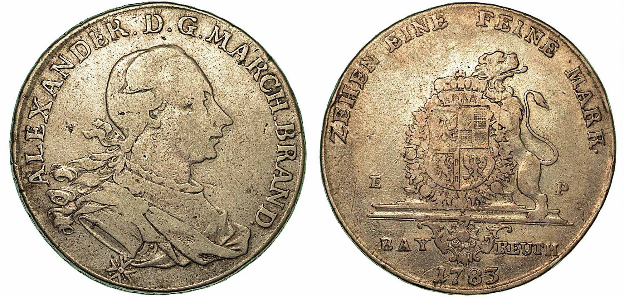 GERMANIA - BRANDEBURGO - BAYEREUTH. Christian Friedrich Karl Alexander, 1757-1791., Thaler 1783.