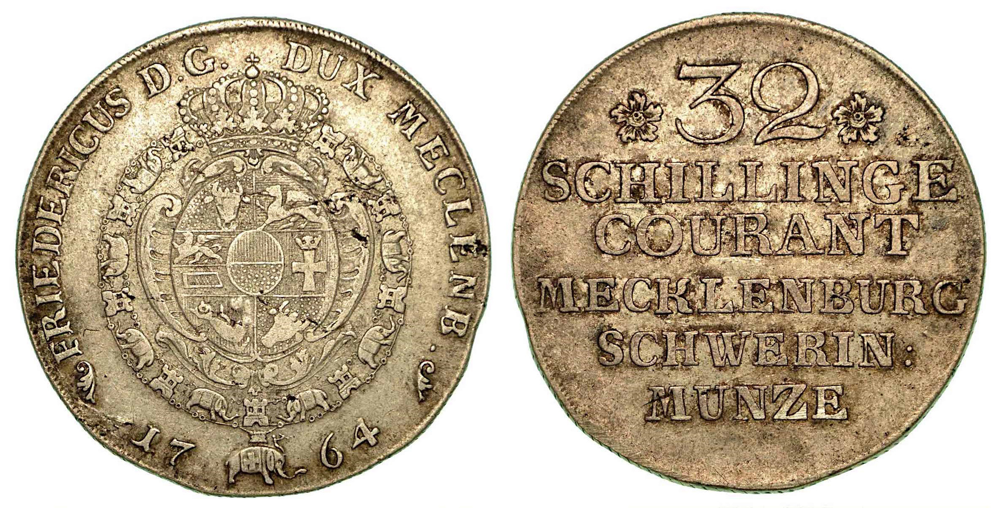 GERMANIA - MECKLENBURG - SCHWERIN Friedrich II, 1756-1785., 32 Schilling 1764.