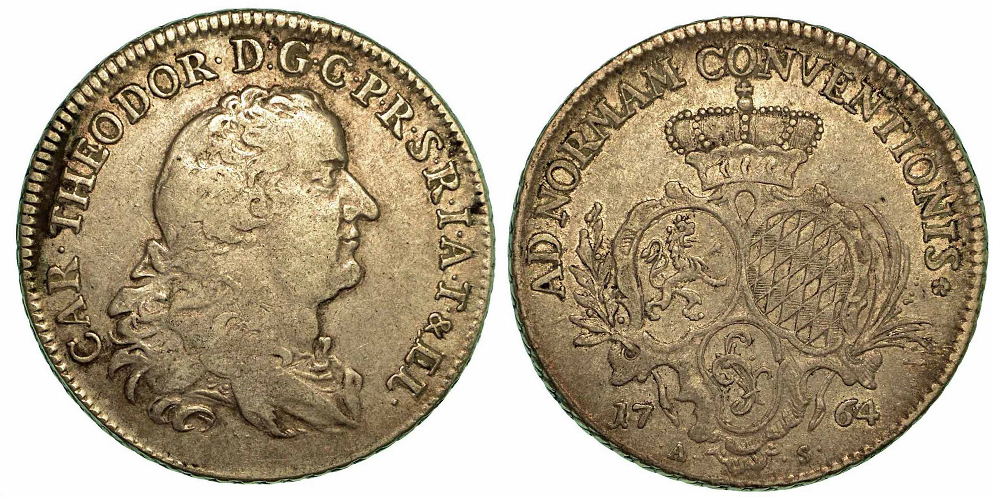 GERMANIA - PFALZ. Karl Theodor, 1743-1799., Thaler 1764.