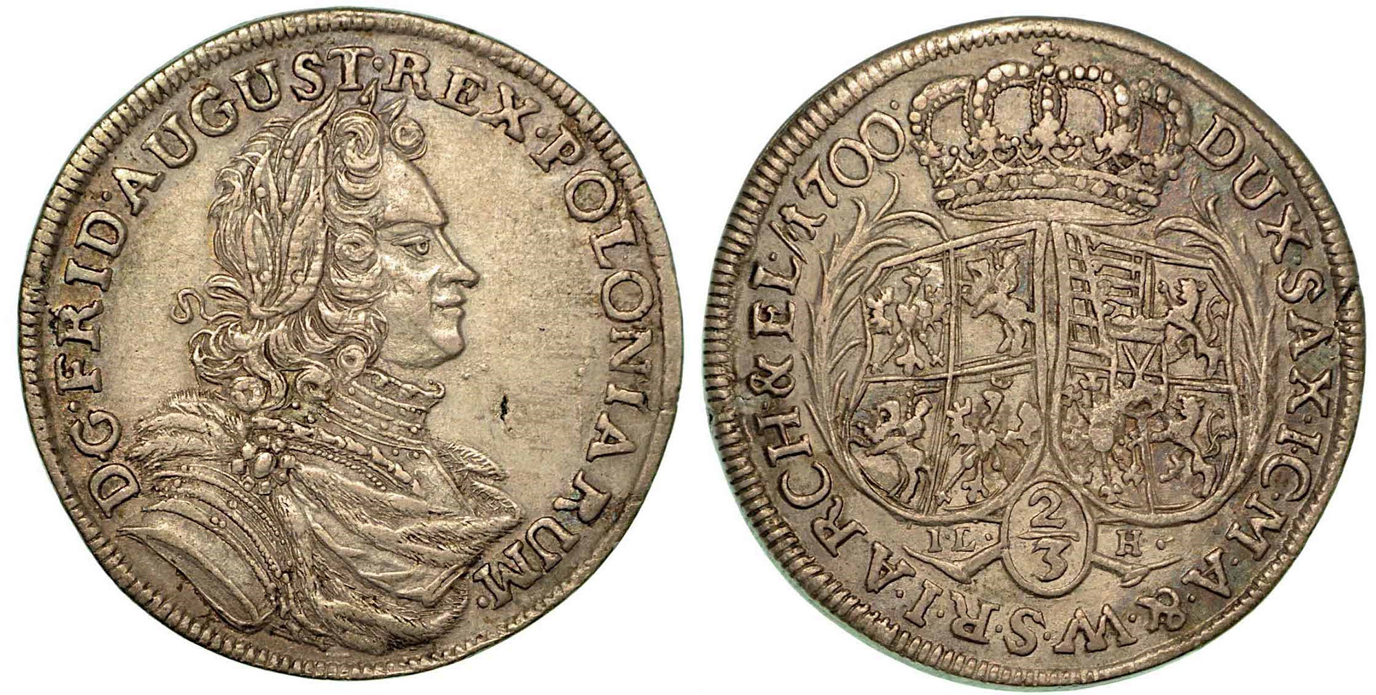 GERMANIA - SASSONIA. Friedrich August I, 1694-1733., 2/3 Thaler 1700.
