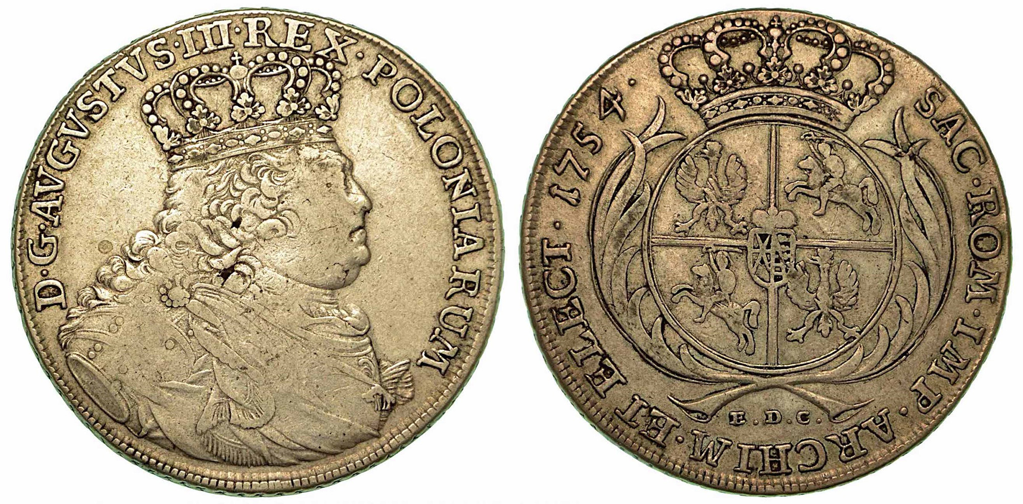 GERMANIA - SASSONIA. Friedrich August III, 1763-1806., Thaler 1754. Busto a d. R/ Stemma coronato. KM# 929.3. DAV. 1617. Arg. g. 28,79. MB/BB