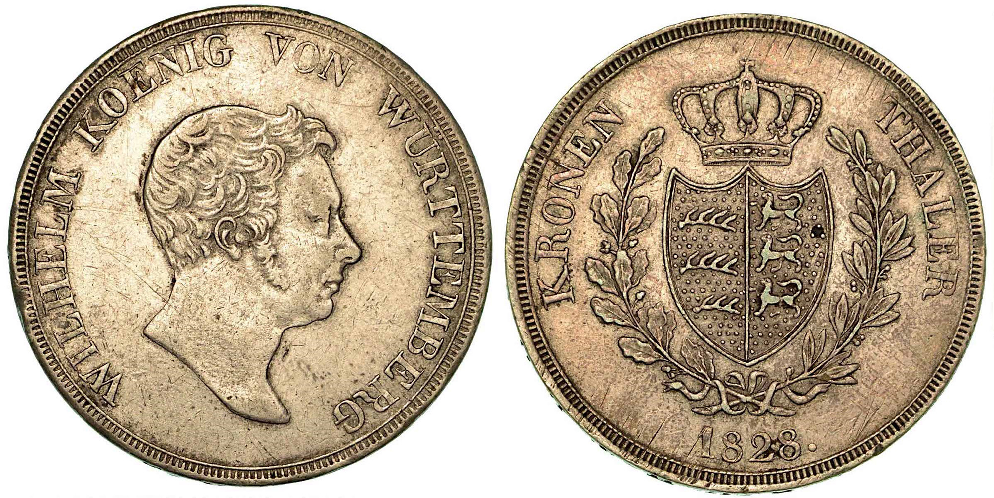 GERMANIA - WURTTEMBERG. Wilhelm I, 1816-1864., Thaler 1828.