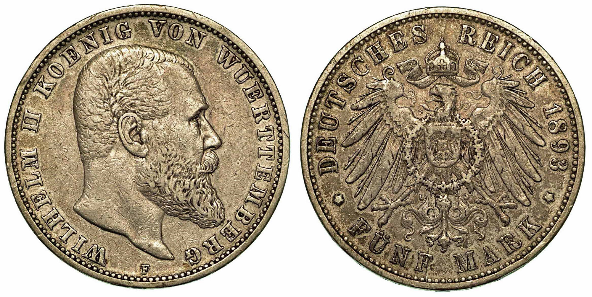 Lotto 426 | GERMANIA - WURTTEMBERG. Wilhelm II, 1891-1918., 5 Mark 1893.