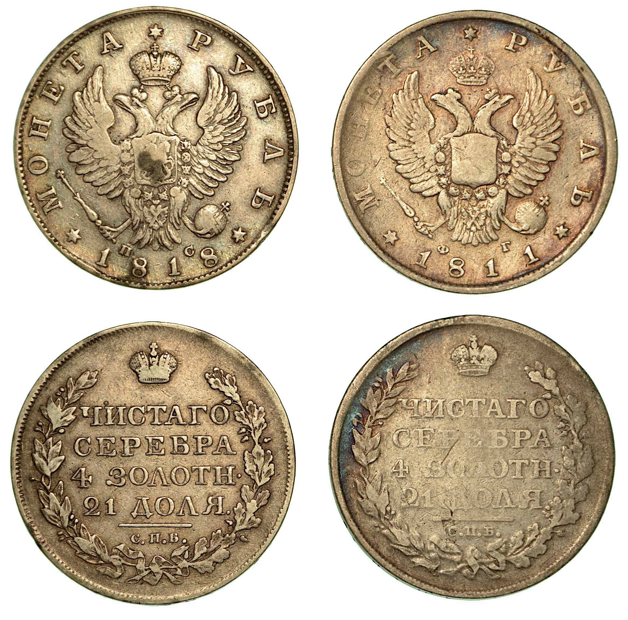 RUSSIA. Lotto di due monete., Aleksandr I, 1801-1825. Rublo 1811 (MB/BB-cartellino Oscar Rinaldi) - 1818 (MB/BB). Aquila bicipite coronata. R/ Legenda su quattro righe orizzontali. KM# 130.