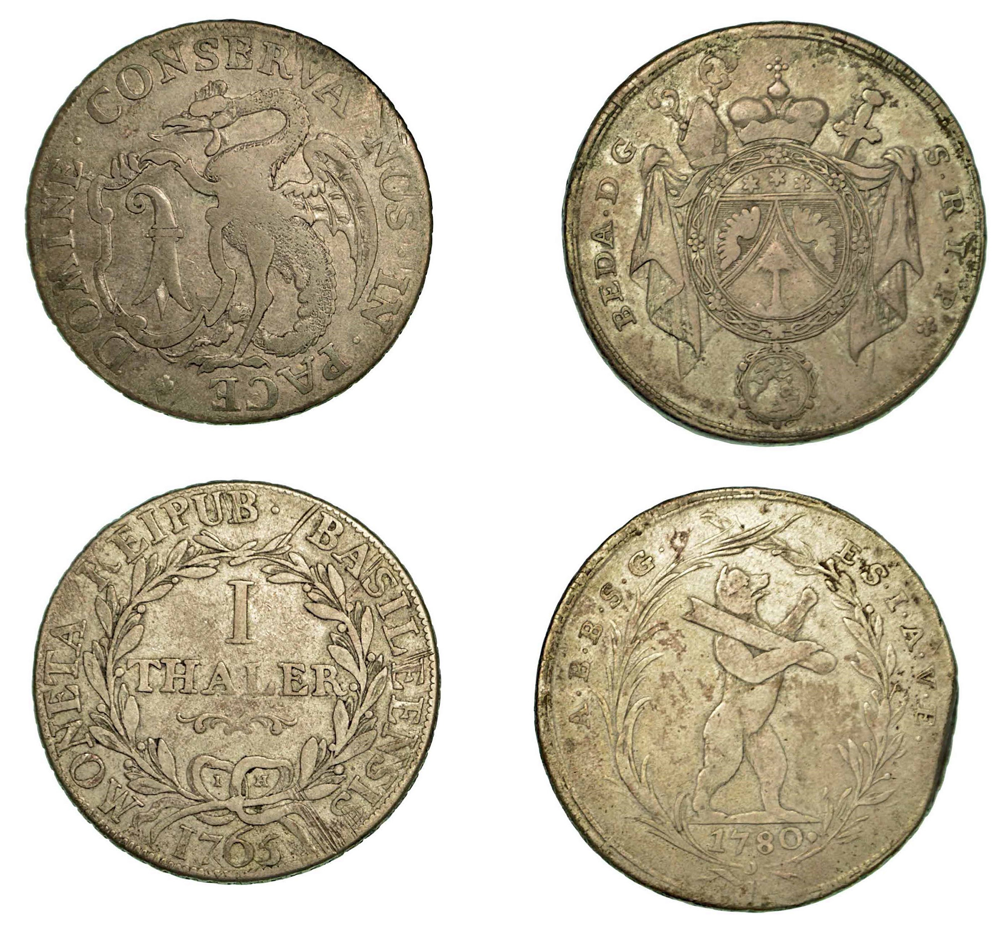 SVIZZERA. Lotto di due monete., San Gallo, Tallero 1780 (B/MB). Basilea, Tallero 1765 (B/MB) KM# 34-169.