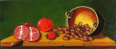 GATTI MARIO Natura morta. 2000. Olio su tavola. Cm 32,50 x 70,00.